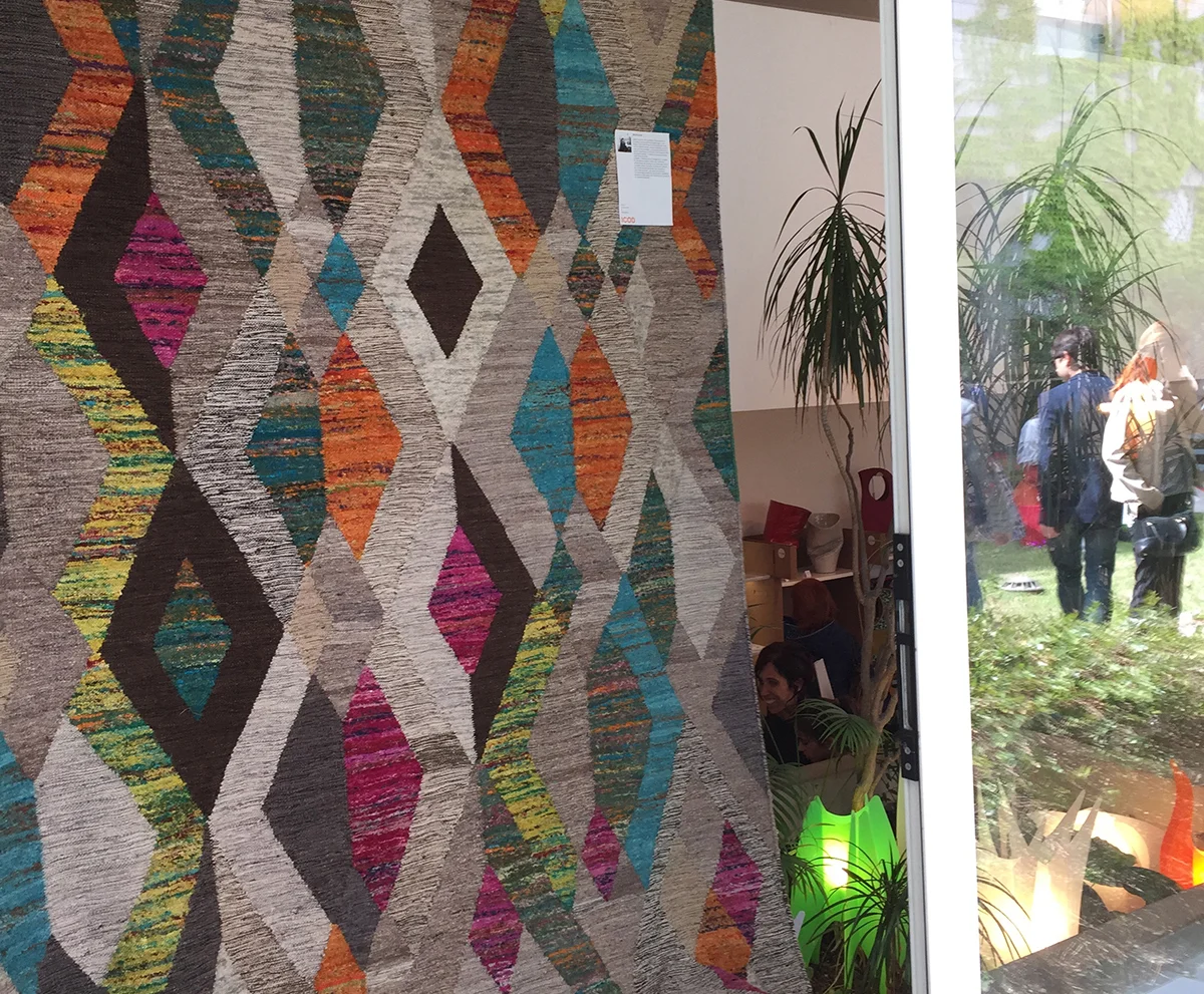 Above - Palermo - 1. Studio Palmigiano reception (kilim and foyer divano, using co-ordinated kilims "heck" and "zig zag " designs , respectively realised in NZ wool in "grey and olive". 2. Cashmere frilly plaid in taupe and grey, accompanied by handpainted pillows in black and white. 3. Poufs - using kilims "melos" design, realised in NZ wool in "gold and black". 4. Salvaged foyer divano , using kilim 'serp' design, realised in NZ wool in "black and white".